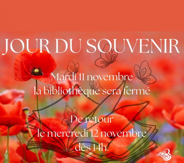Le mardi 11 novembre, la bibliothèque sera fermée pour le jour du Souvenir.